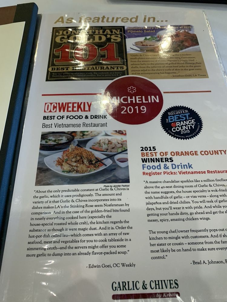 Garlic and Chives, an Asian Fusion Vietnamese restaurant in Garden Grove, CA, offers a delightful dining experience with vegan options and a welcoming atmosphere. Customers rave about the honey walnut shrimp, flavorful ginger lobster, and generously portioned dishes. The attentive service, bilingual staff, and elegant decor enhance the upscale dining experience. Prices are reasonable, making it a great choice for a classy meal out. The crispy steamed rice and pork belly dishes receive high praise for their nostalgic flavors and care in preparation. With a diverse menu, exceptional service, and cozy ambiance, Garlic and Chives is a must-visit for those seeking a memorable dining experience. Don't miss out on their renowned garlic noodles and other delicious offerings.
