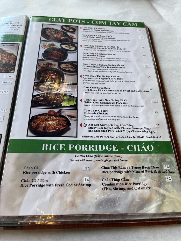 Salmon Belly caramelized in coconut water and fish sauce. Served in claypot with rice and pickled mustard greens
